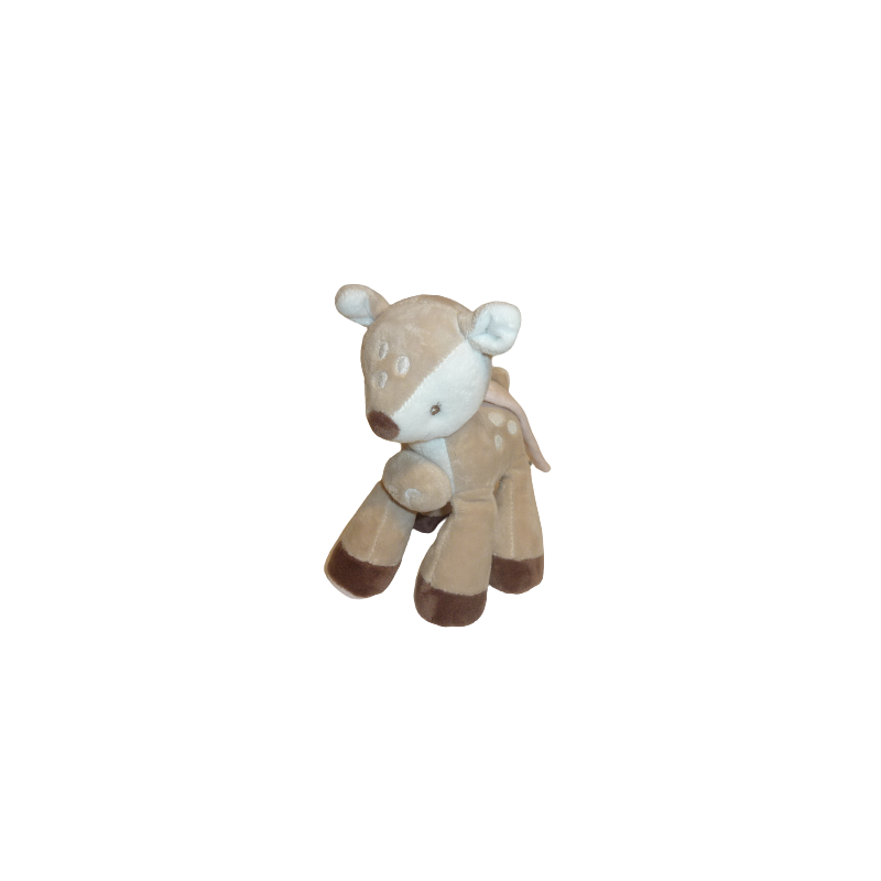 Doudou musical cerf 20 cm environ de hauteur, beige blanc. Etat : Comme neuf. DOUDOU DIFFICILE A TROUVER.