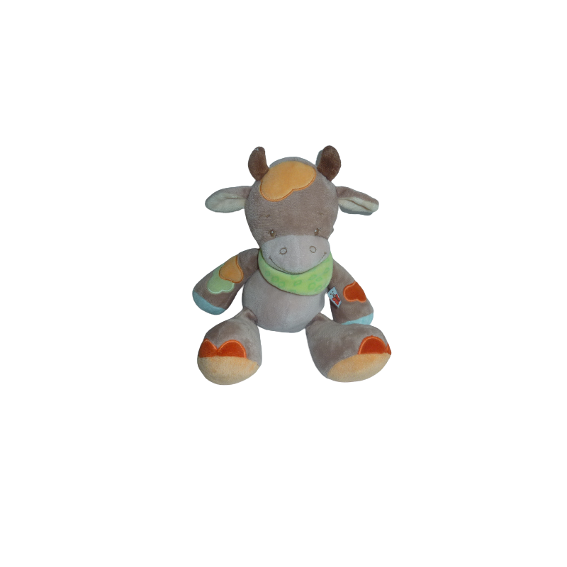 Doudou peluche musicale vache 28 cm environ, marron, orange vert. Etat : Comme neuf. DOUDOU DIFFICILE A TROUVERDestinataire :