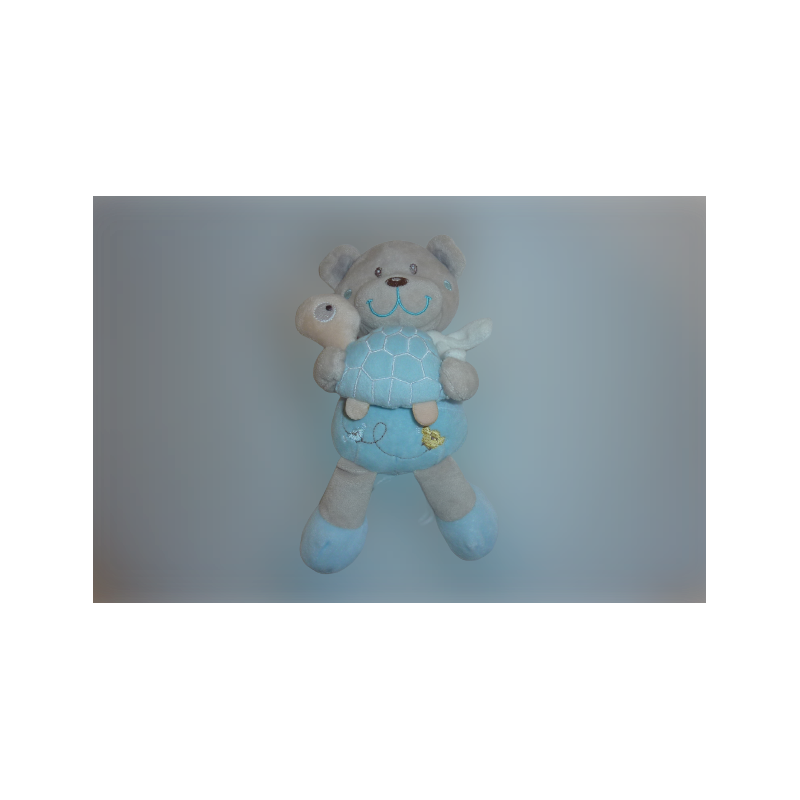 Doudou peluche musicale 28 cm environ, tient une tortue, bleu marron motifs. Etat : Comme neuf. DOUDOU DIFFICILE A TROUVERDestinataire :