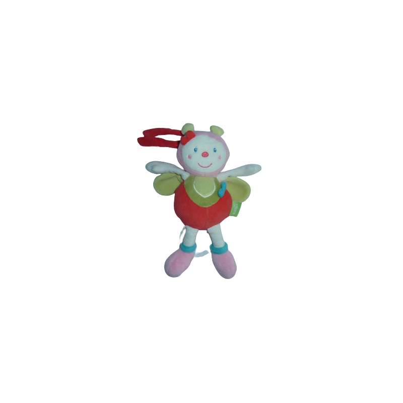 Doudou peluche musicale papillon 24 cm environ, rose vert rouge. Etat : Très bon état (étiquette d'informations coupée)