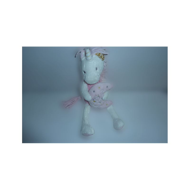 Doudou peluche musicale licorne 35 cm environ, rose. Etat : Comme neuf (étiquette de la marque coupée)Destinataire :