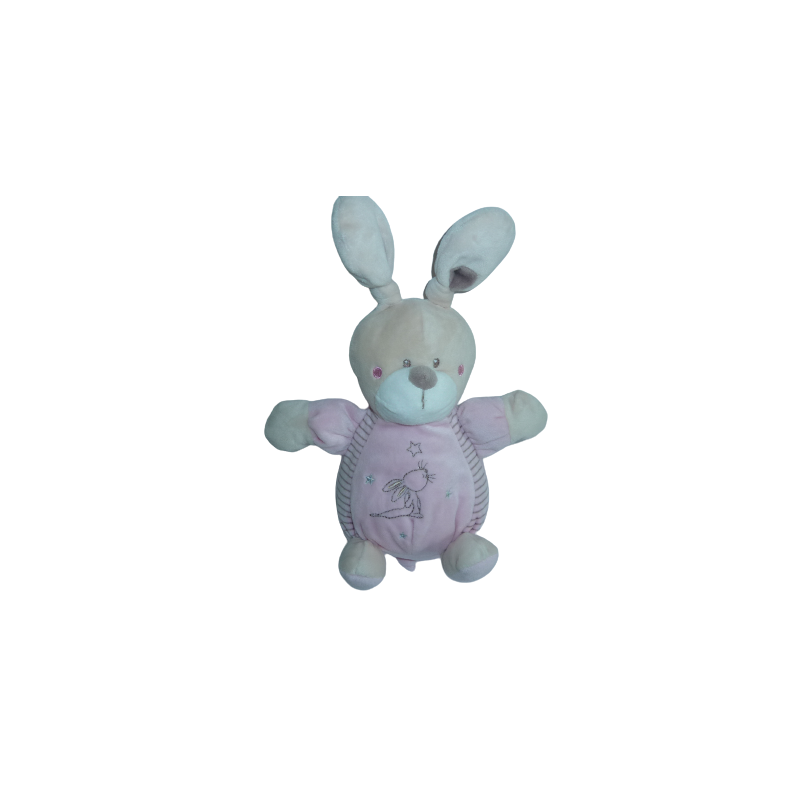 Doudou peluche musicale lapin 29 cm environ tout compris, rose motif lapin étoiles. Etat :Comme neufDestinataire :