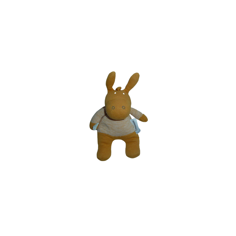 Doudou peluche musicale 24 cm environ oreilles comprises, moutarde et rayures, matière bio. Etat : Comme neuf