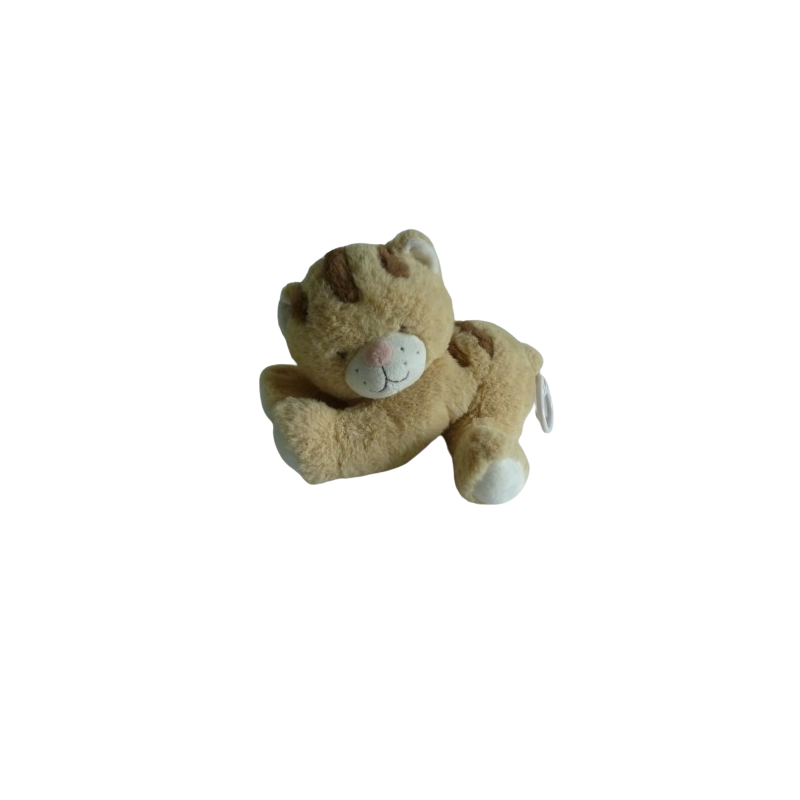 Doudou peluche musicale tigre 24 cm environ de large, marron blanc. Etat : Comme neufDestinataire :