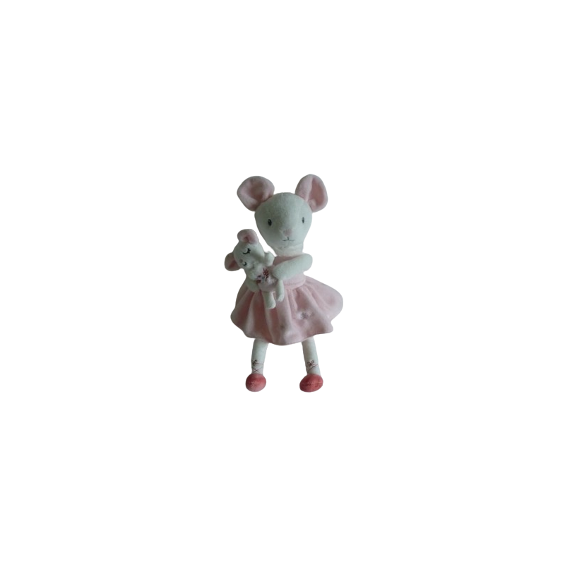 Doudou peluche musicale souris 32 cm environ, rose blanc motifs fleurs. Etat : Comme neufDestinataire :