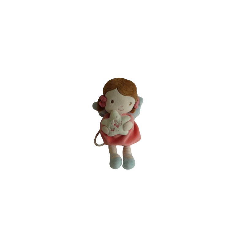 Doudou peluche musicale poupée 26 cm environ, rose bleu. Etat : Comme neufDestinataire :