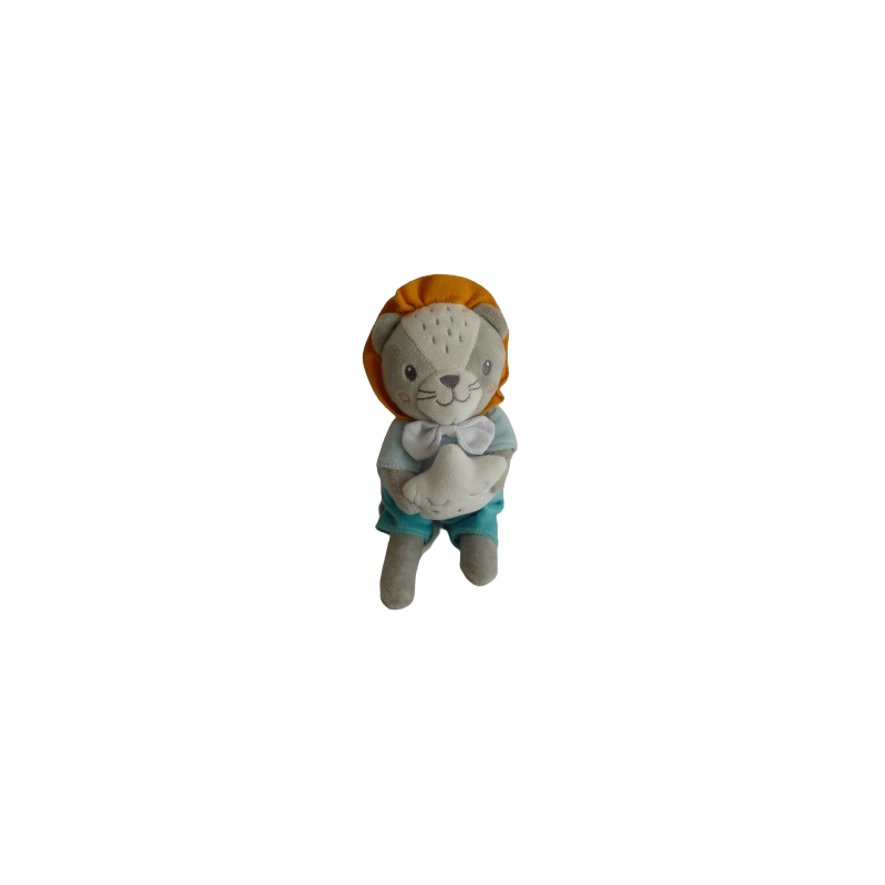 Doudou peluche musicale lion 26 cm environ, bleu bleu turquoise, crinière jaune, tient une étoile. Etat : Comme neufDestinataire :