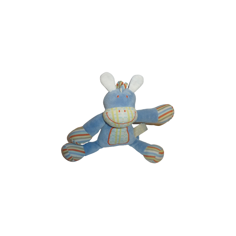 Doudou peluche âne 22 cm environ, bleu motifs. Etat : Très bon état. DOUDOU DIFFICILE A TROUVER.Destinataire :
