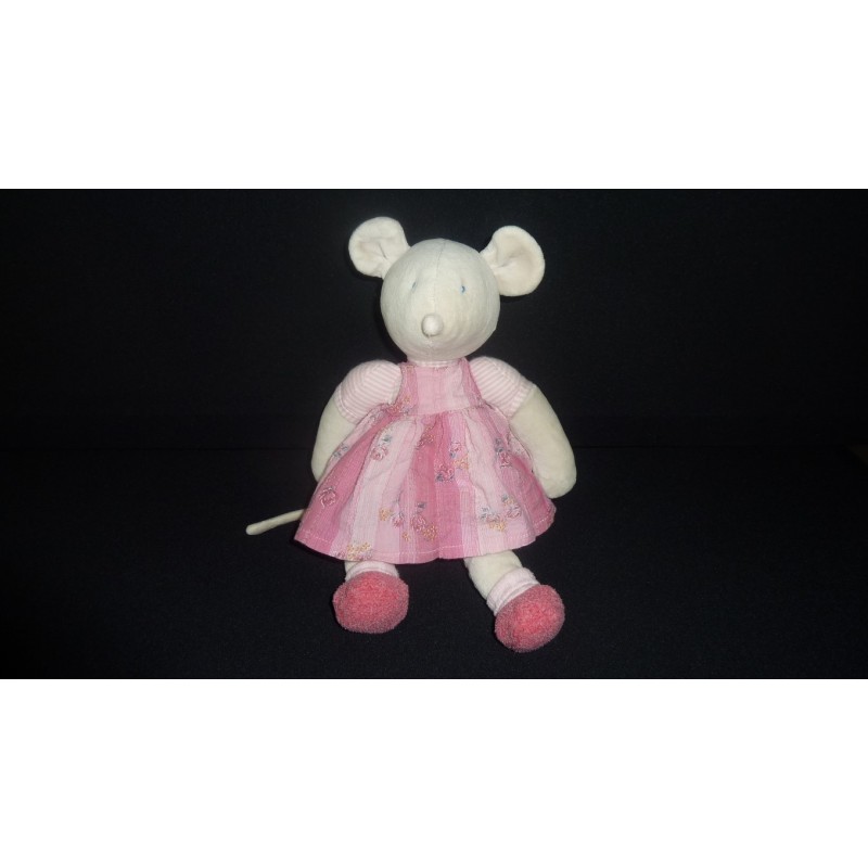 description du doudou : Doudou peluche souris de 29 cm environ, billes au popotin et les pattes, porte une robe. Doudou super doux. Etat : Bon état (une petite tache sur un bras), jamais utilisé, produit original.Destinataire :