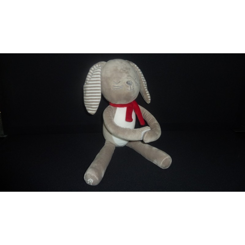 description du doudou : Doudou peluche lapin de 40 cm environ, 2 pattes velcro, écharpe rouge au cou. Doudou super doux. Etat : Comme neuf (étiquette de la marque coupée), produit original.Destinataire :