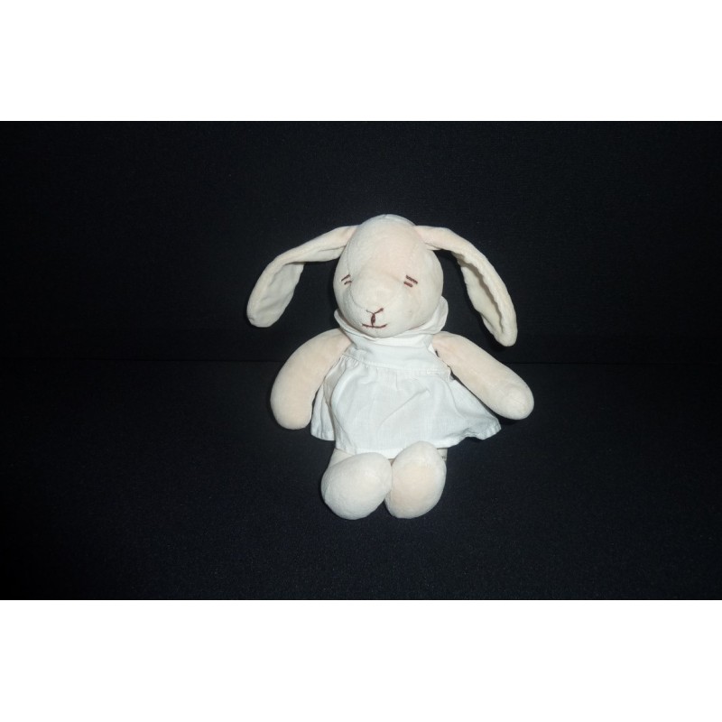 Description du doudou : Doudou peluche de 24 cm environ (sans les oreilles), porte une petite robe blanche. Doudou super doux. Etat : Comme neuf. Produit original.