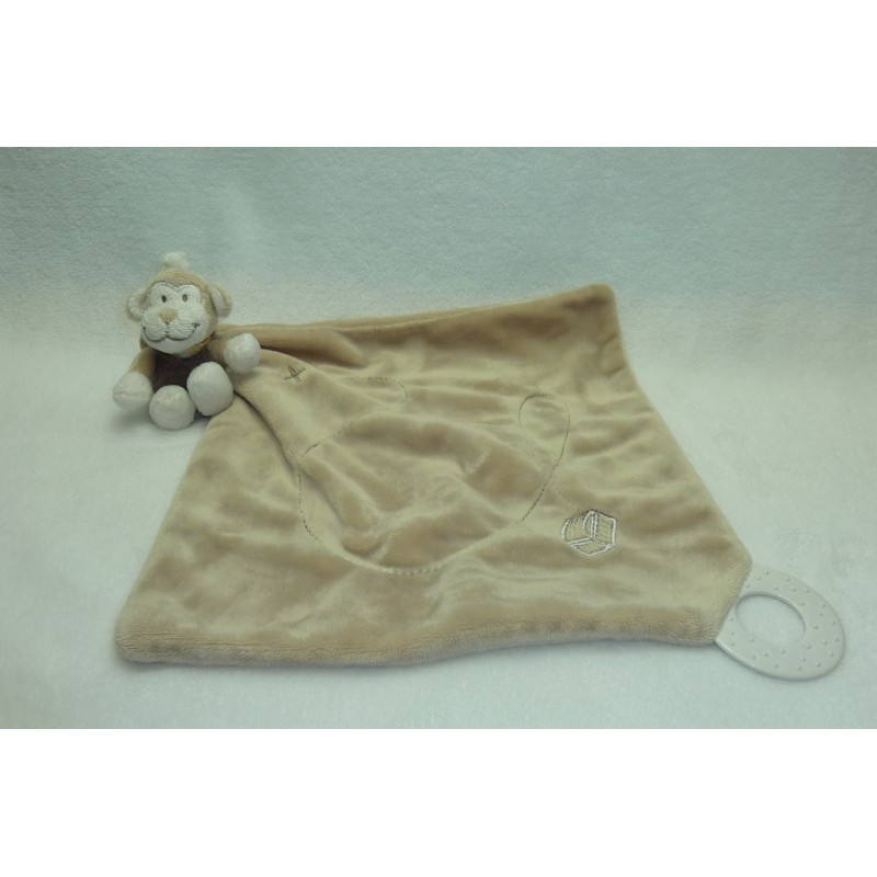 Description du doudou : Doudou peluche singe de 12 cm environ, mouchoir avec anneau de dentition. Coloris principal : marron. Etat : Comme neuf. Produit original. DOUDOU DIFFICILE A TROUVER