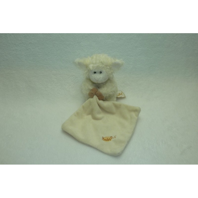 Description du doudou : Doudou peluche mouton de 15 cm environ, tient un mouchoir. Coloris : blanc, marron, écru. Etat : Comme neuf. Produit original. DOUDOU DIFFICILE A TROUVER