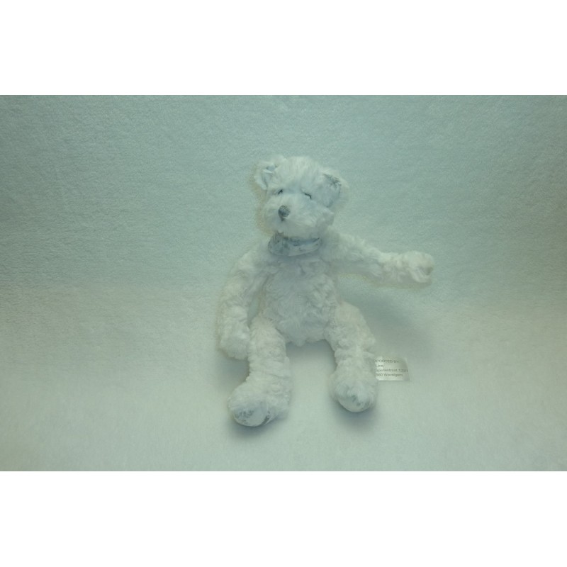 Description du doudou : Doudou peluche ours de 24 cm environ, billes dans le ventre et les pattes. Coloris : blanc, écharpe blanc gris fleurs au cou, sous les pattes : tissu blanc gris fleurs dont Oscar brodé sous une patte. Etat : Comme neuf. Produit original. DOUDOU DIFFICILE A TROUVERDestinataire :