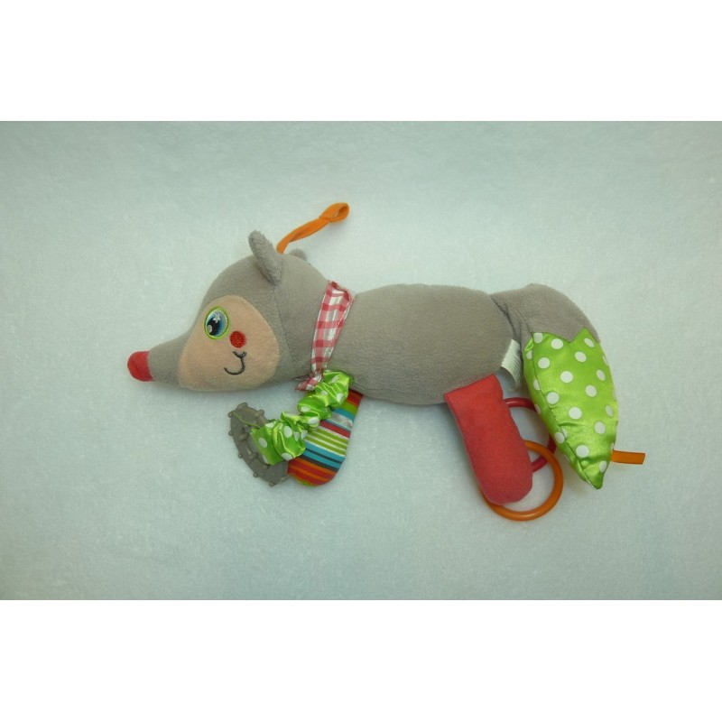 Description du doudou : Doudou peluche renard de 25 cm environ sans compter la queue, activités d'éveil : grelot, pouet pouet, matière bruissante, anneauxplat étoile de 24 cm environ de large sans compter les nouages, éveil : grelot, pouet pouet, matière bruissante, anneaux, anneau de dentition fonction vivrante en tirant sur l'anneau. Coloris : gris et multicolores. Etat : Très très bon état mais la fonction vibrante ne fonctionne plus. Produit original. DOUDOU DIFFICILE A TROUVERDestinataire :