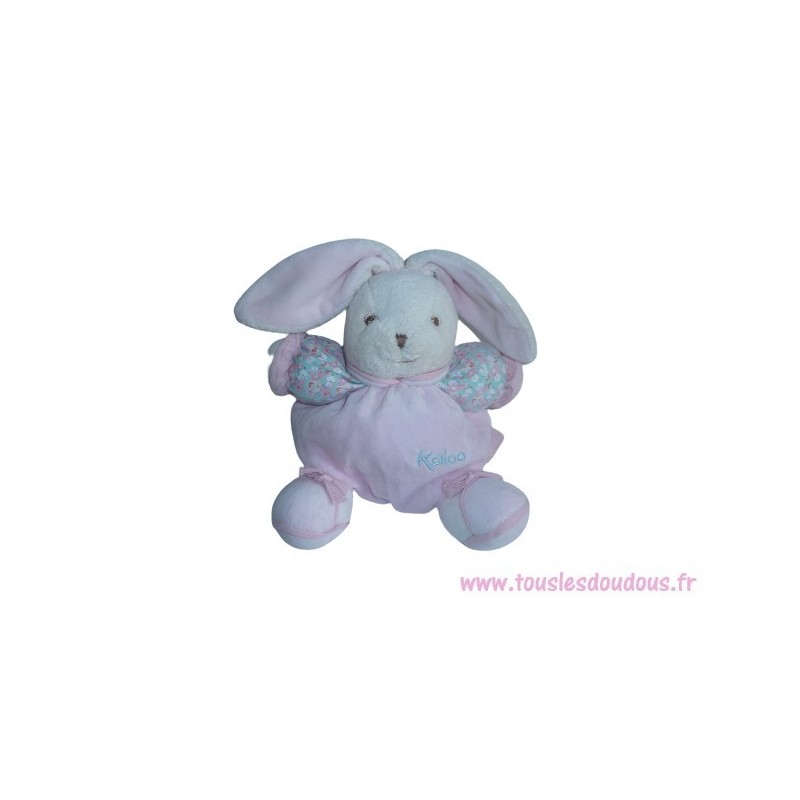 Doudou peluche boule lapin de 20 cm environ (sans les oreilles), rose tissu fleuri, grelot. Etat : Très bon état. SOS DOUDOU DIFFICILE A TROUVER.
