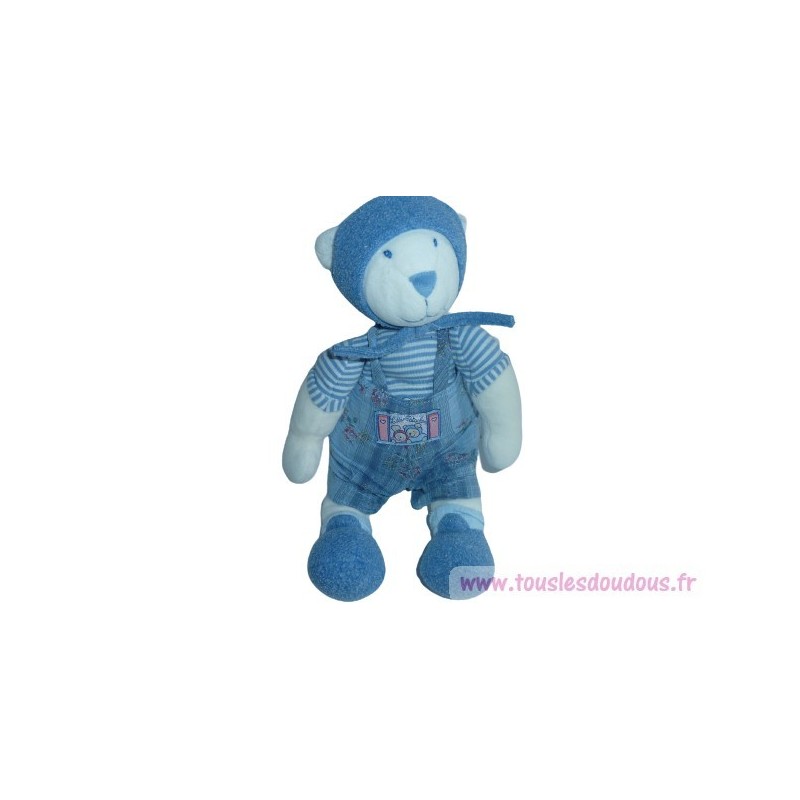 Doudou peluche ours 30 cm environ, bleu blanc. Etat : Très bon état. SOS DOUDOU DIFFICILE A TROUVER.