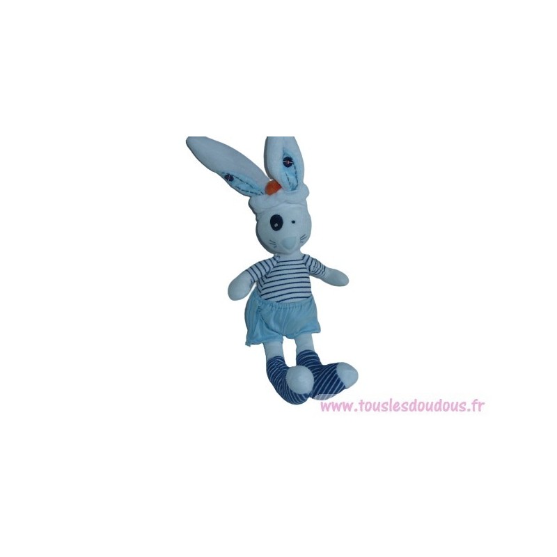 Doudou peluche lapin 31 cm environ (sans compter les oreilles), blanc rayures. Etat : Très bon état. SOS DOUDOU DIFFICILE A TROUVER.Destinataire :