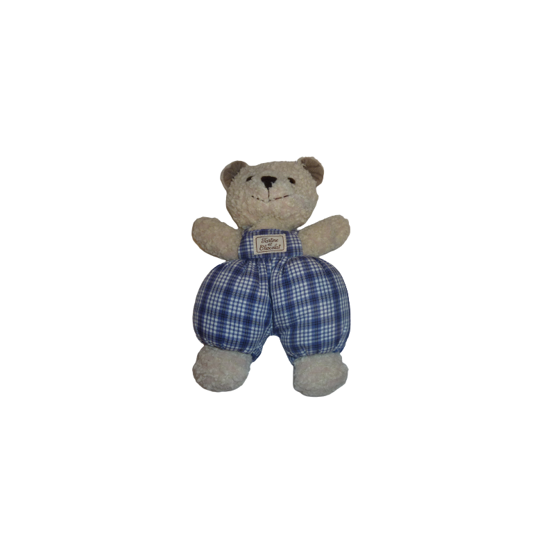 Doudou peluche ours style vintage 30 cm environ, beige salopette à carreaux. Etat : Neuf sans étiquette boutique. DOUDOU DIFFICILE A TROUVER.