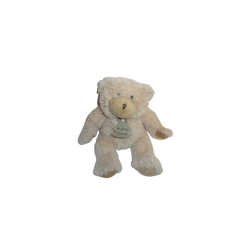 Doudou peluche ours 21 cm environ, billes au popotin et les pattes, marron clair. Etat : Comme neuf (étiquette d'informations coupée). DOUDOU DIFFICILE A TROUVER.Destinataire :