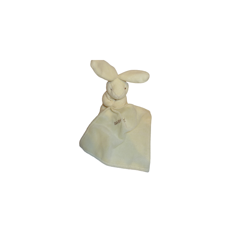 Doudou peluche lapin avec mouchoir 16 cm environ oreilles comprises, écru. Etat : Comme neuf. DOUDOU DIFFICILE A TROUVER.