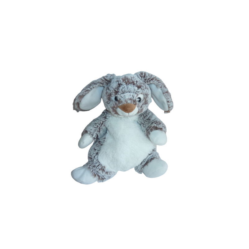 Doudou peluche lapin 24 cm environ sans compter les oreilles, billes au popotin, marron chiné blanc. Etat : Comme neuf. DOUDOU DIFFICILE A TROUVER