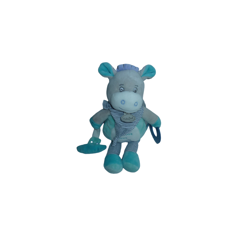 Doudou peluche éveil âne 28 cm environ, grelot, anneau dentition, pouet pouet, blanc gris turquoise. Etat : Comme neuf. DOUDOU DIFFICILE A TROUVERDestinataire :