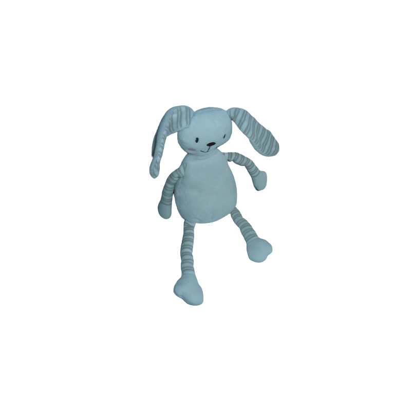 Doudou peluche lapin 30 cm environ, blanc rayures. Etat : Comme neuf (étiquette de la marque coupée). DOUDOU DIFFICILE A TROUVERDestinataire :