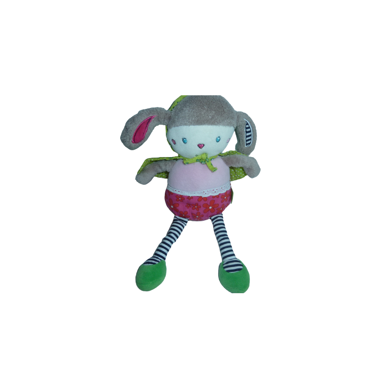 Doudou peluche poupée lapin 30 cm environ, grelot, multicolore. Etat : Neuf sans étiquette boutique. DOUDOU DIFFICILE A TROUVERDestinataire :