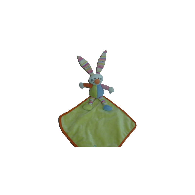 Doudou peluche mouchoir lapin 35 cm environ de longueur tout compris lapin et mouchoir (sans compter les oreilles), vert bleu. Etat : Comme neuf. DOUDOU DIFFICILE A TROUVERDestinataire :