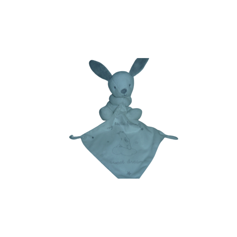 Doudou peluche lapin 14 cm environ sans les oreilles, mouchoir My Lilltle Bunny, blanc motif lapin étoiles. Etat : Neuf sans étiquette boutique. DOUDOU DIFFICILE A TROUVER