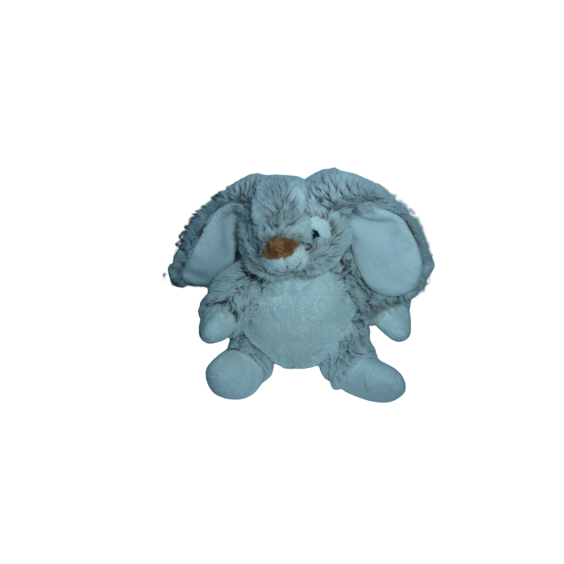 Doudou peluche lapin 23 cm environ sans les oreilles, gris chiné blanc, billes au popotin. Etat : Comme neuf. DOUDOU DIFFICILE A TROUVER