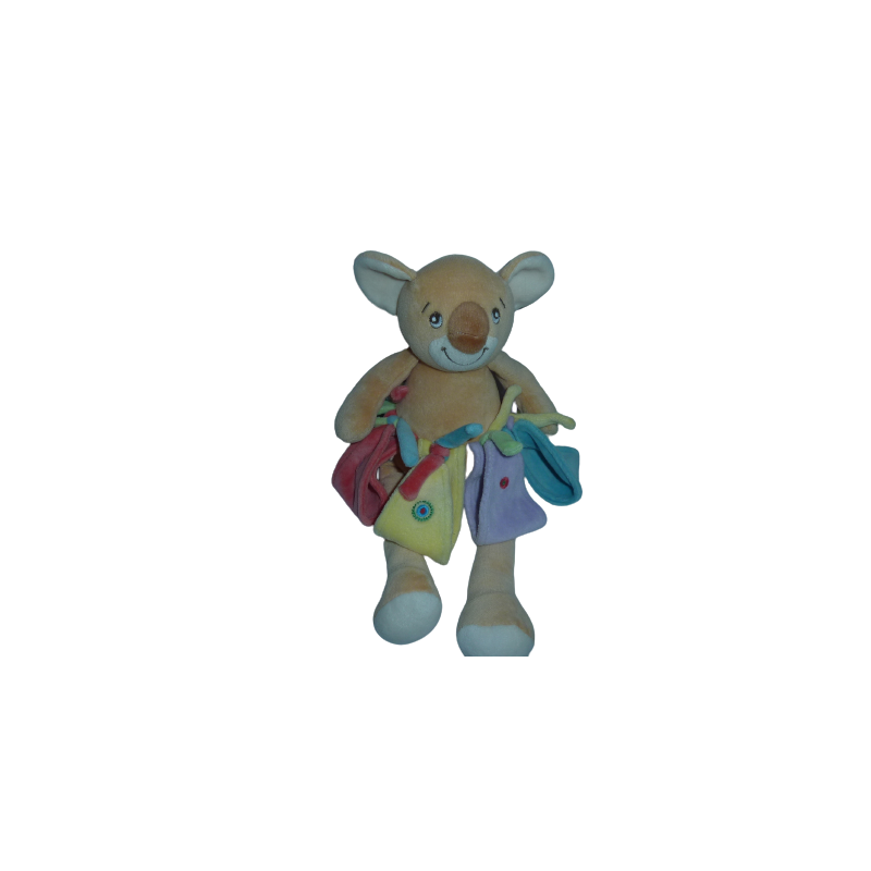 Doudou peluche koala 34 cm environ, marron jupe multicolore. Etat : parfait état. DOUDOU DIFFICILE A TROUVERDestinataire :
