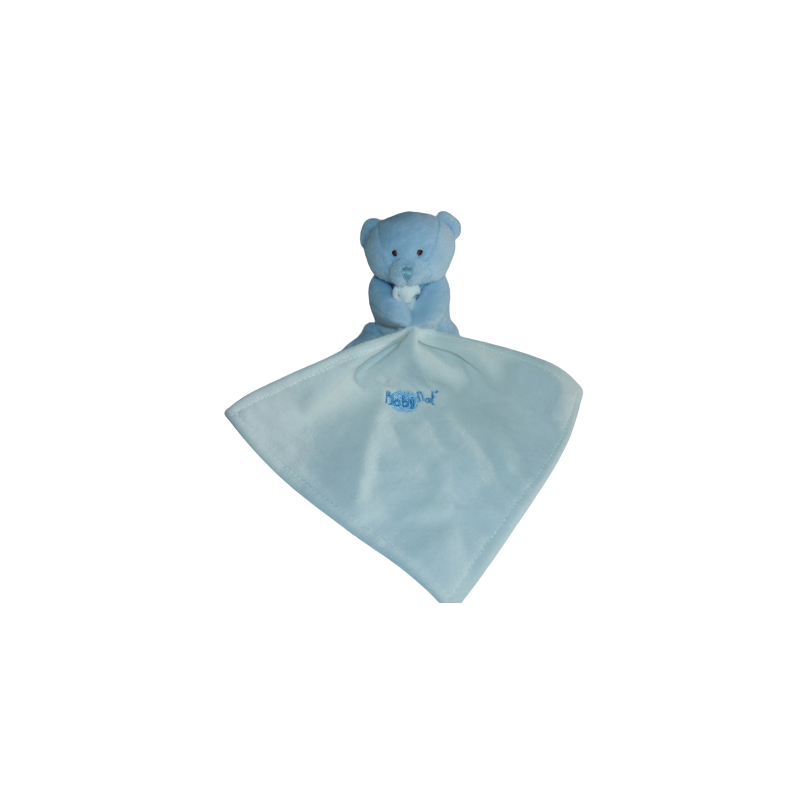 Doudou peluche ours mouhcoir bleu blanc 10 cm environ. Etat : Neuf. DOUDOU DIFFICILE A TROUVERDestinataire :