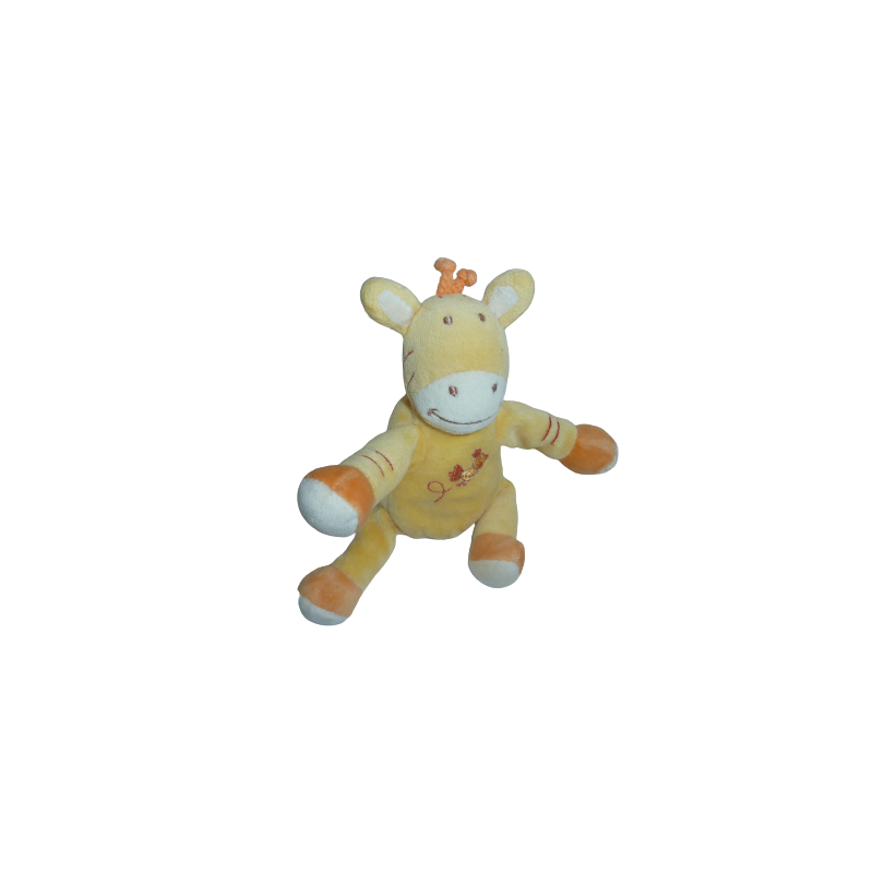 Doudou peluche cheval 19 cm environ jambes tendues, jaune orange oiseau brodé. Etat : Très bon état. DOUDOU DIFFICILE A TROUVER