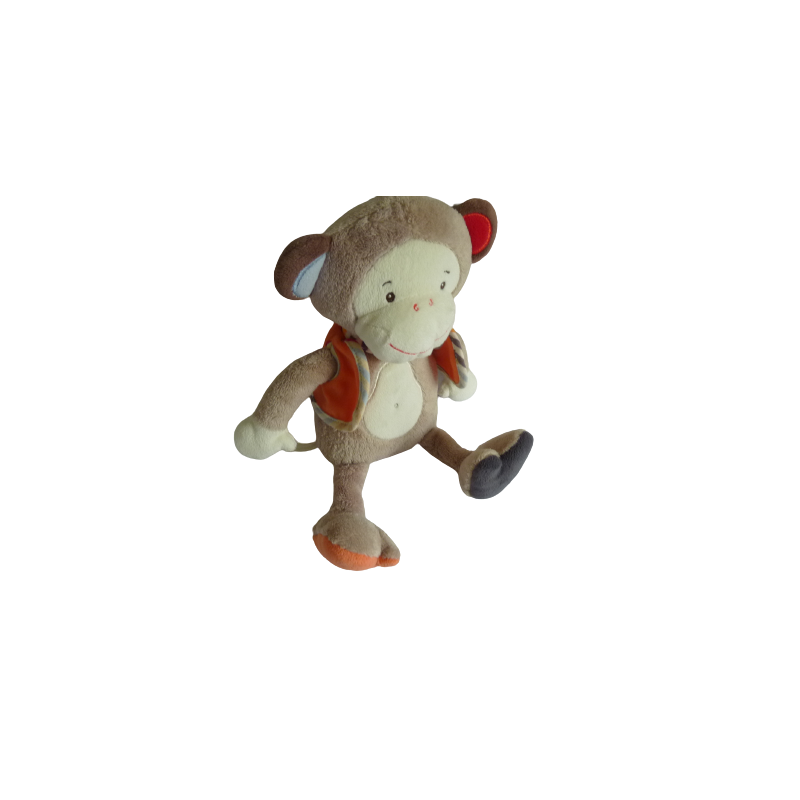 Doudou peluche singe 30 cm environ, grelot, marron écru. Etat : Comme neufDestinataire :