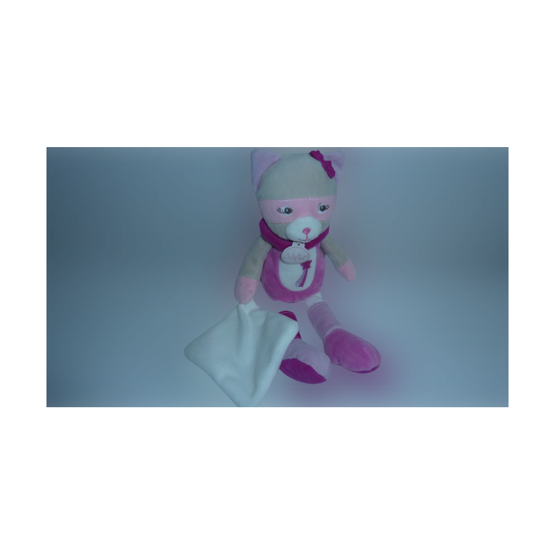 Doudou peluche chat 30 cm environ, rose blanc fushia mouchoir blanc . Etat : Comme neufDestinataire :