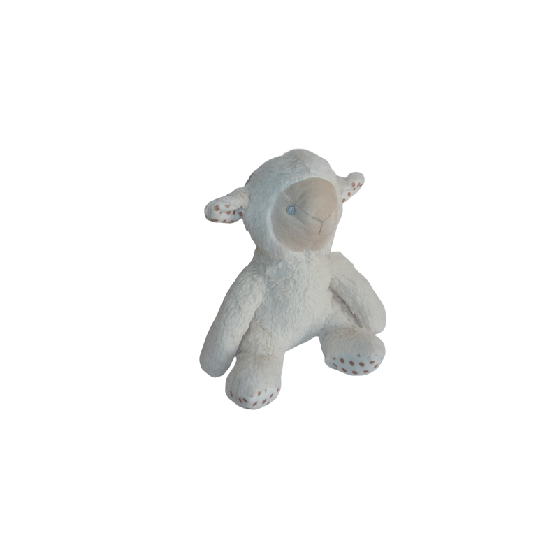 Doudou peluche mouton 30 cm environ position assise, blanc beige motif pois. Etat : Comme neuf (étiquette de la marque coupée)Destinataire :