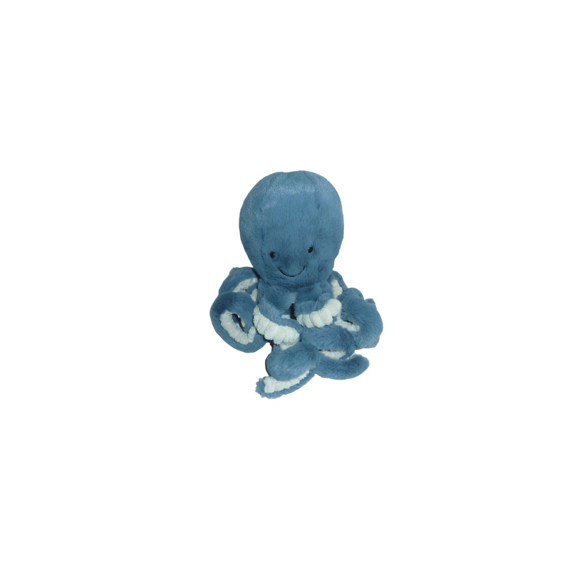 Doudou peluche pieuvre bleu blanc 24 cm environ. Etat : Comme neufDestinataire :