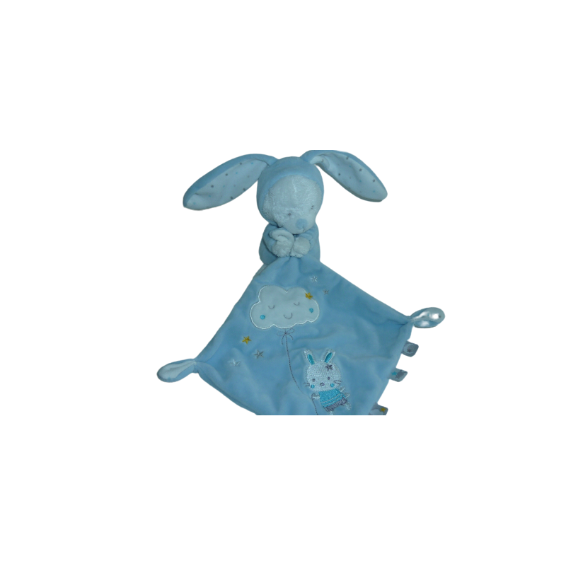 Doudou peluche ours bleu blanc 16 cm environ sans compter les oreilles de lapin, mouchoir 17x17 cm environ bleu motifs nuage étoiles lapin. Etat : Comme neufDestinataire :