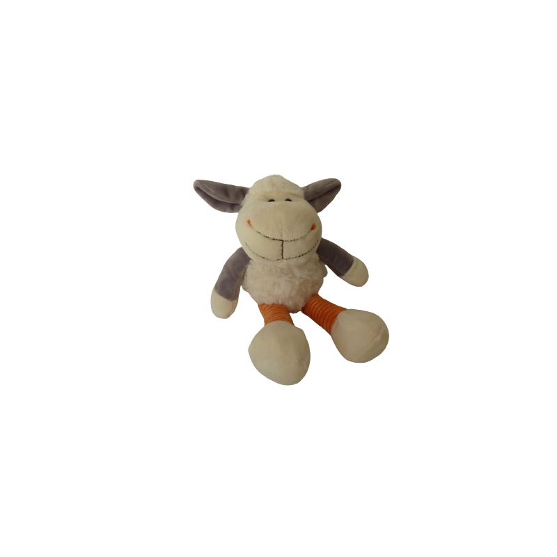 Doudou peluche mouton 32 cm environ, blanc écru gris orange. Etat : Comme neufDestinataire :