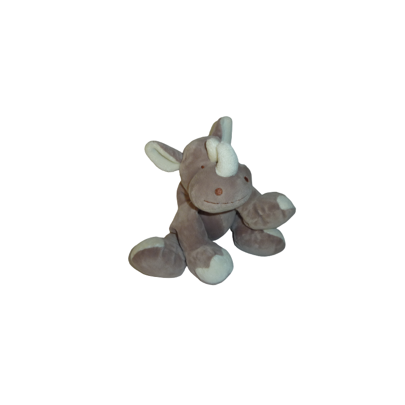 Doudou peluche rhinocéros 24 cm environ de hauteur, marron écru. Etat : Parfait état
