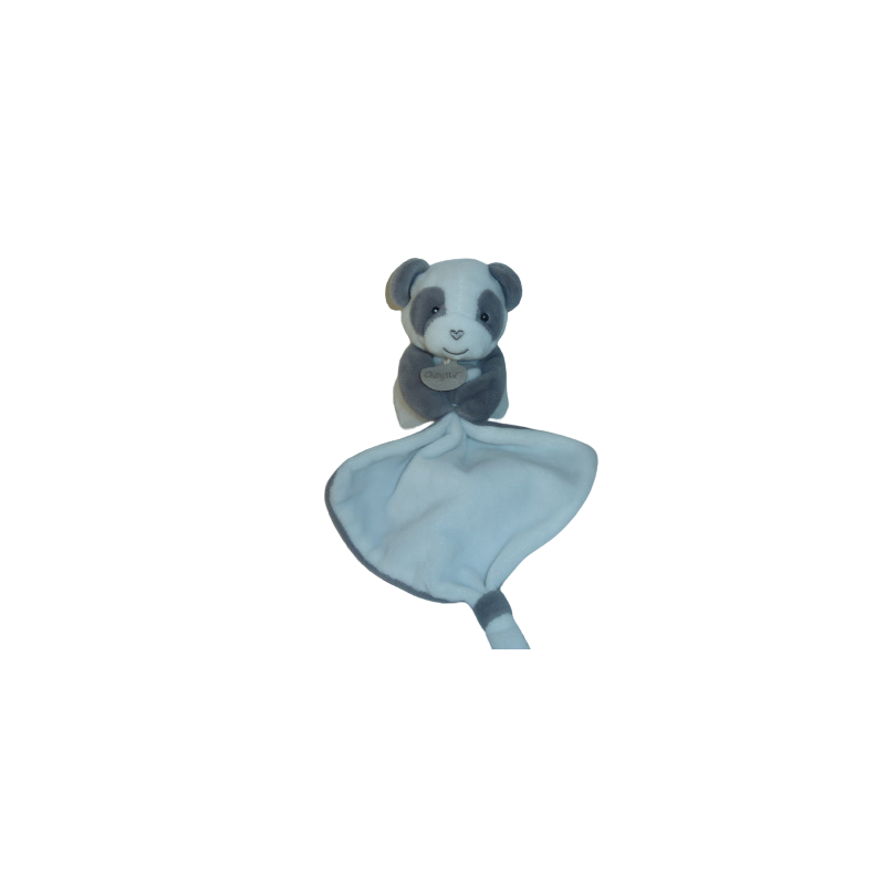 Doudou peluche panda blanc gris 20 cm environ, mouchoir blanc gris 12x12 cm environ. Etat : Comme neuf (étiquette de la marque coupée)