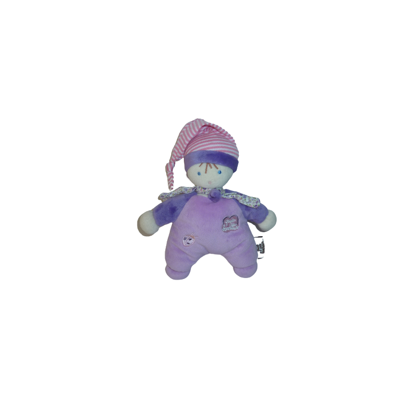 Doudou peluche poupée 20 cm environ sans compter le bonnet, mauve violet. Etat : Comme neufDestinataire :