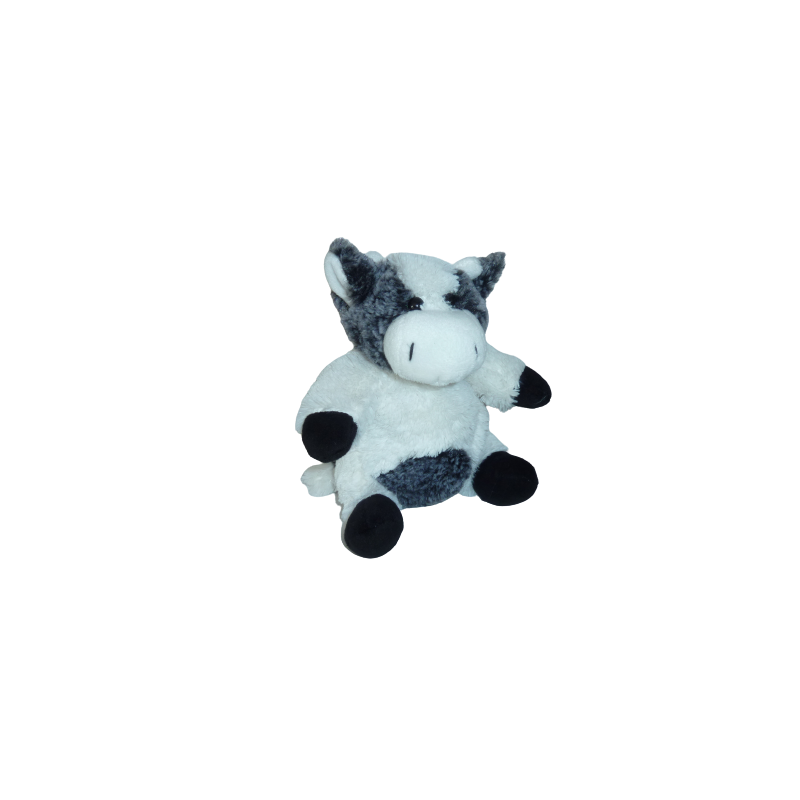 Doudou peluche vache 21 cm environ, billes au popotin, blanc gris noir . Etat : Comme neuf