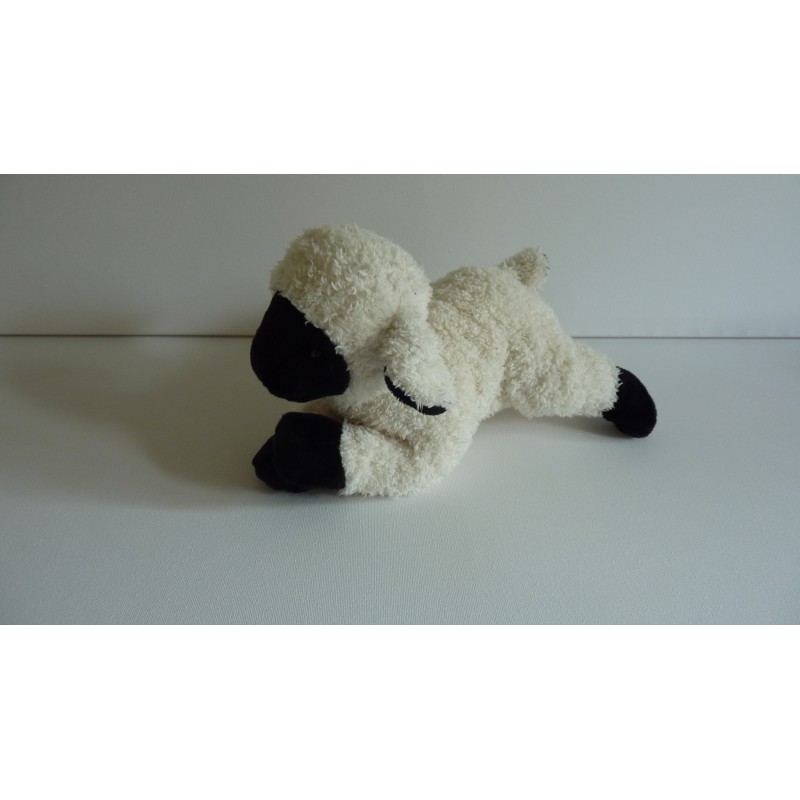 Doudou peluche mouton 331 cm environ de large , écru noir. Etat : Comme neuf