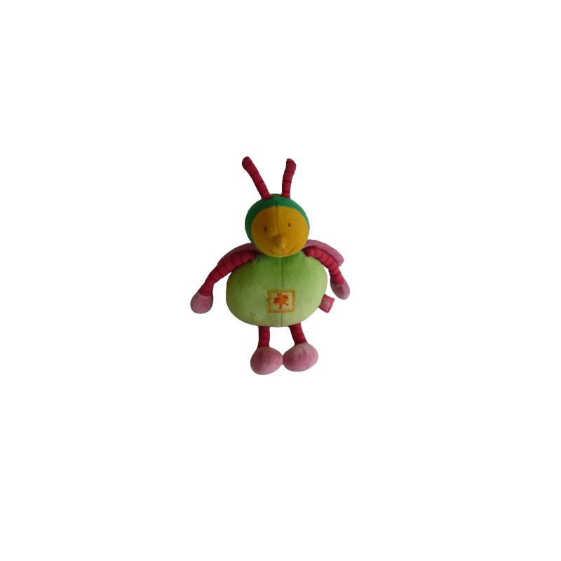 Doudou peluche abeille 38 cm environ antennes comprises, billes au popotin, vert rose rayures. Etat : Très bon étatDestinataire :