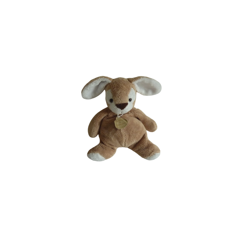Doudou peluche lapin 22 cm environ sans compter les oreilles, billes au popotin et pattes, marron blanc. Etat : Doudou a du vécu mais il est encore en bon état, idéal doudou de secours