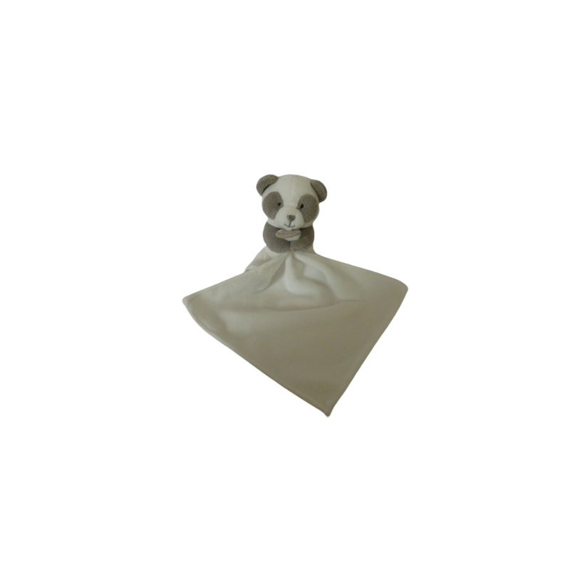 Doudou peluche panda blanc gris 12 cm environ, mouchoir blanc 16,5x16,5 cm environ. Etat : Comme neuf