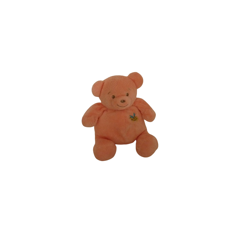 Doudou peluche ours 24 cm environ, saumon motif abeille. Etat : Comme neuf